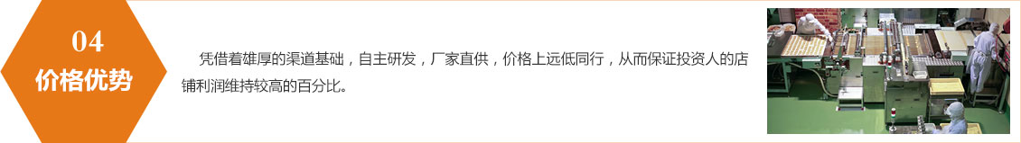 中国连锁经营协会(CCFA)的调查报告显示,投资者选择连锁合作模式,投资者的经营成功率为80%;使用自主单店创业模式的成功率仅为20%。CCFA权威建议,想创业、但又没有足够资金与经验的投资者,应该选择一个实力雄厚的品牌进行合作。不仅能有效降低投资风险,提高创业成功率,而且能为持续高额盈利提供强大、可靠的保障。